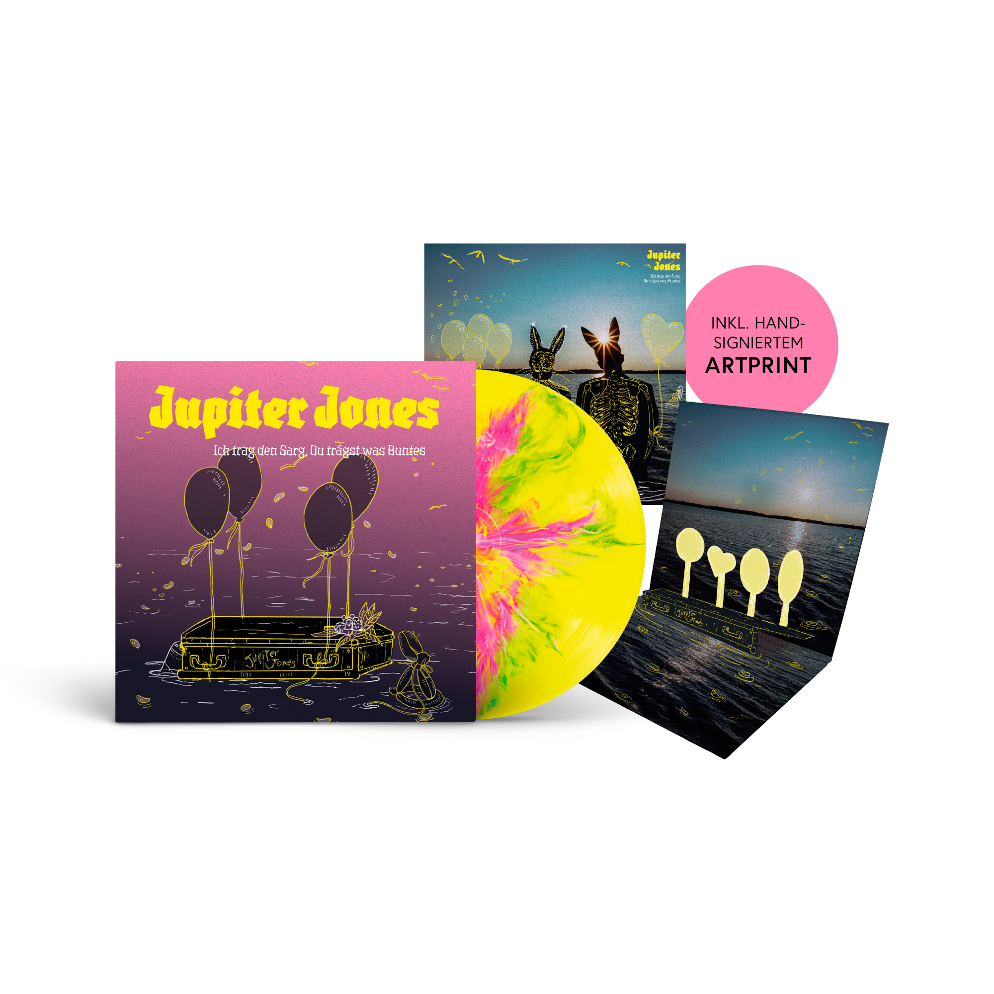 Die Deluxe Vinyl Edition von „Ich trag den Sarg, Du trägst was Buntes“ ist ein echtes Sammlerstück: aufwendig, nachhaltig und mit viel Liebe zum Detail umgesetzt.