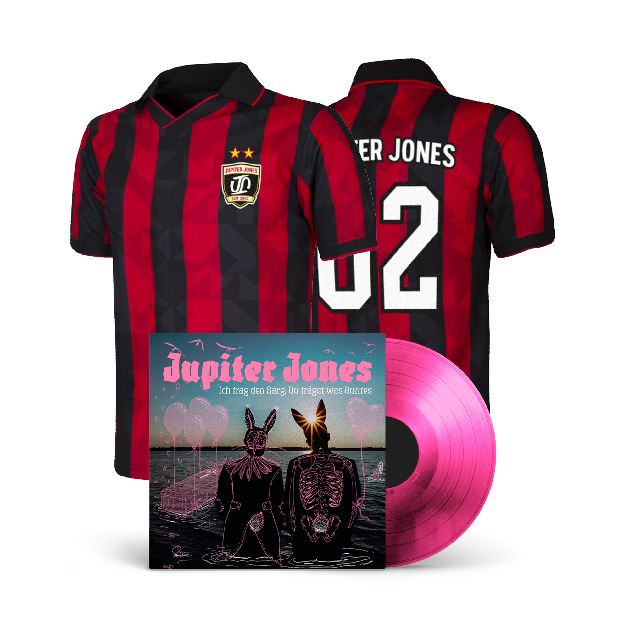 Jupiter Jones "Bundle: LP (pink) - Ich trag den Sarg, Du trägst was Buntes + Trikot - signiert"