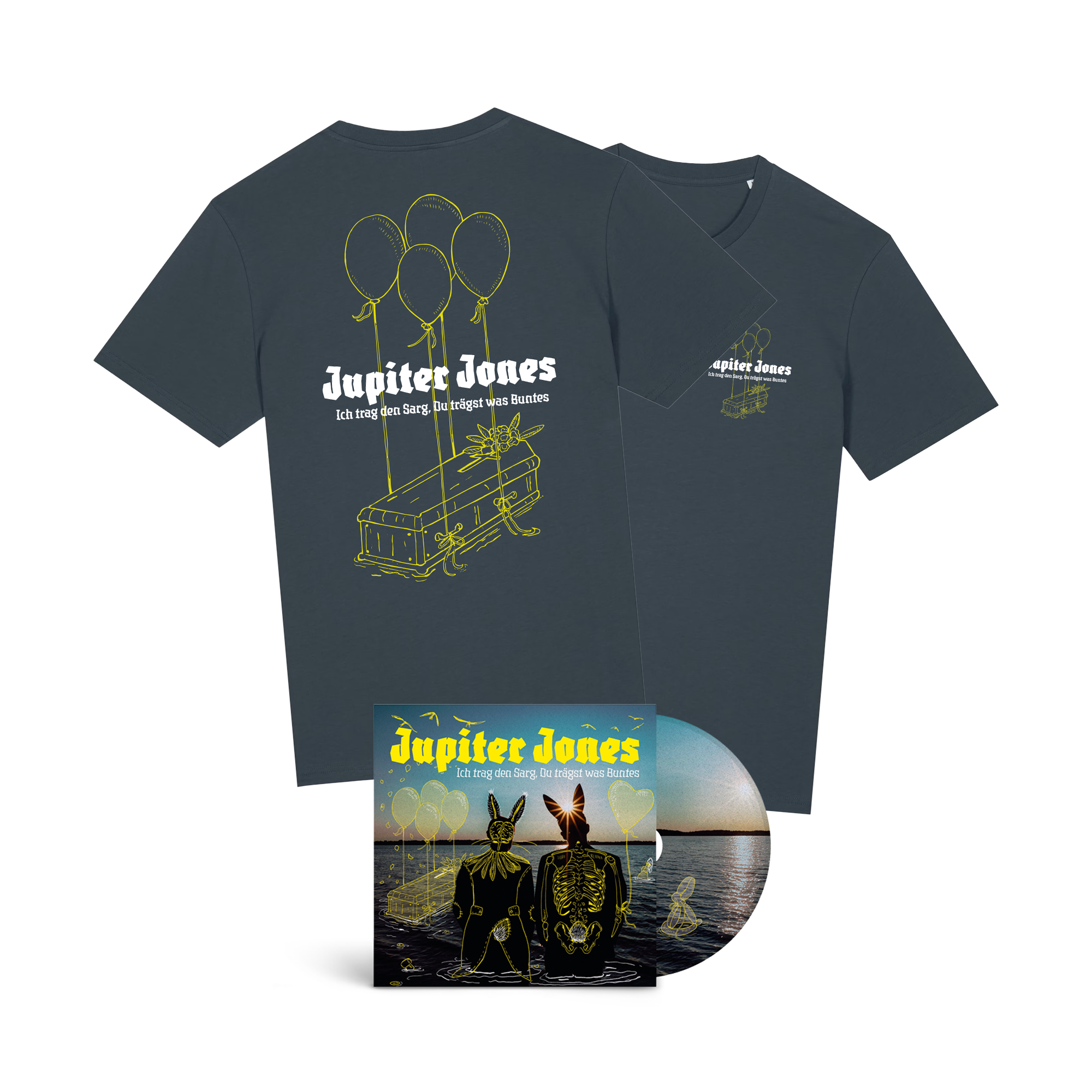 Jupiter Jones "Bundle: CD (Digipak) - Ich trag den Sarg, Du trägst was Buntes + T-Shirt, india ink grey - signiert"